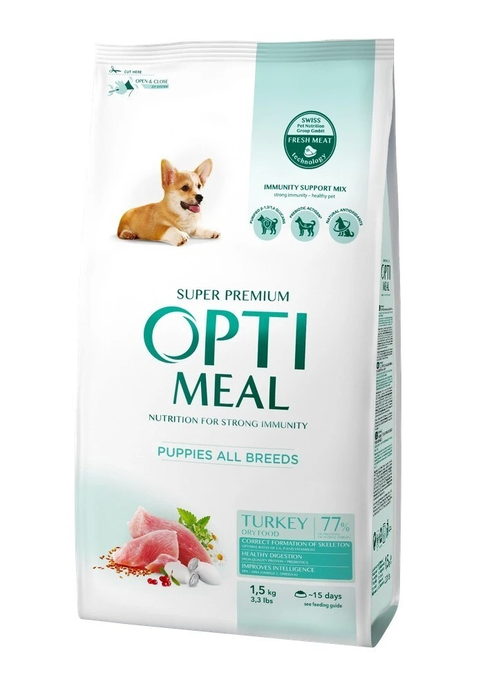 Повнораціонний сухий корм для цуценят усіх порід – індичка