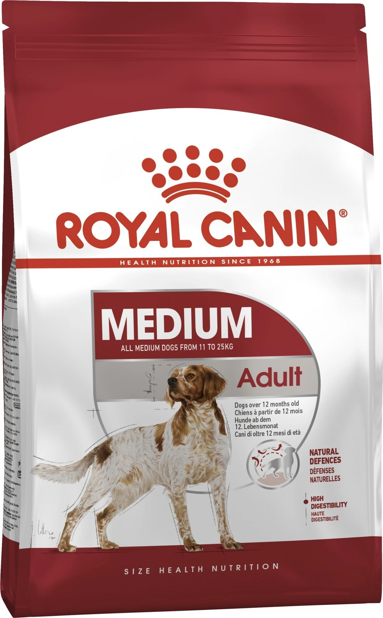 Повнораціонний корм Royal Canin для дорослих собак середніх розмірів (вагою від 11 до 25 кг) у віці старше 12 місяців.