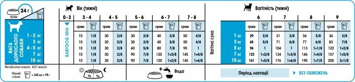 Повнораціонний збалансований сухий корм для цуценят у період відлучення до 2-місячного віку. Для собак у останній третині вагітності та під час лактації.