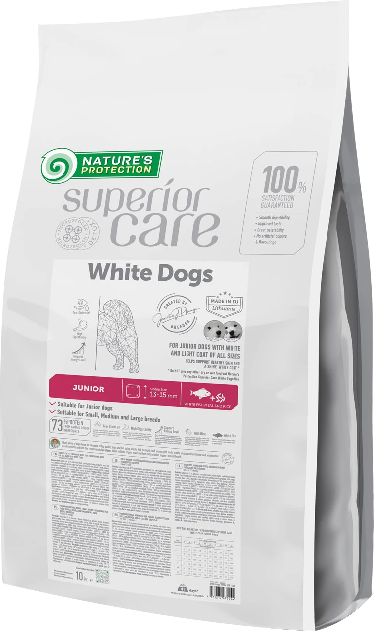 Власники собак з білою та світлою шерстю часто стикаються з такою проблемою, як потемніння шерсті в області очей та на інших частинах тіла домашнього улюбленця, таких як: борідка, лапки тощо. Саме для вирішення цієї проблеми у співпраці з професійними заводчиками та експертами в галузі харчування домашніх тварин, а також з урахуванням передових досліджень і застосуванням новітніх технологій, була розроблена спеціалізована лінійка сухих кормів WHITE DOGS.