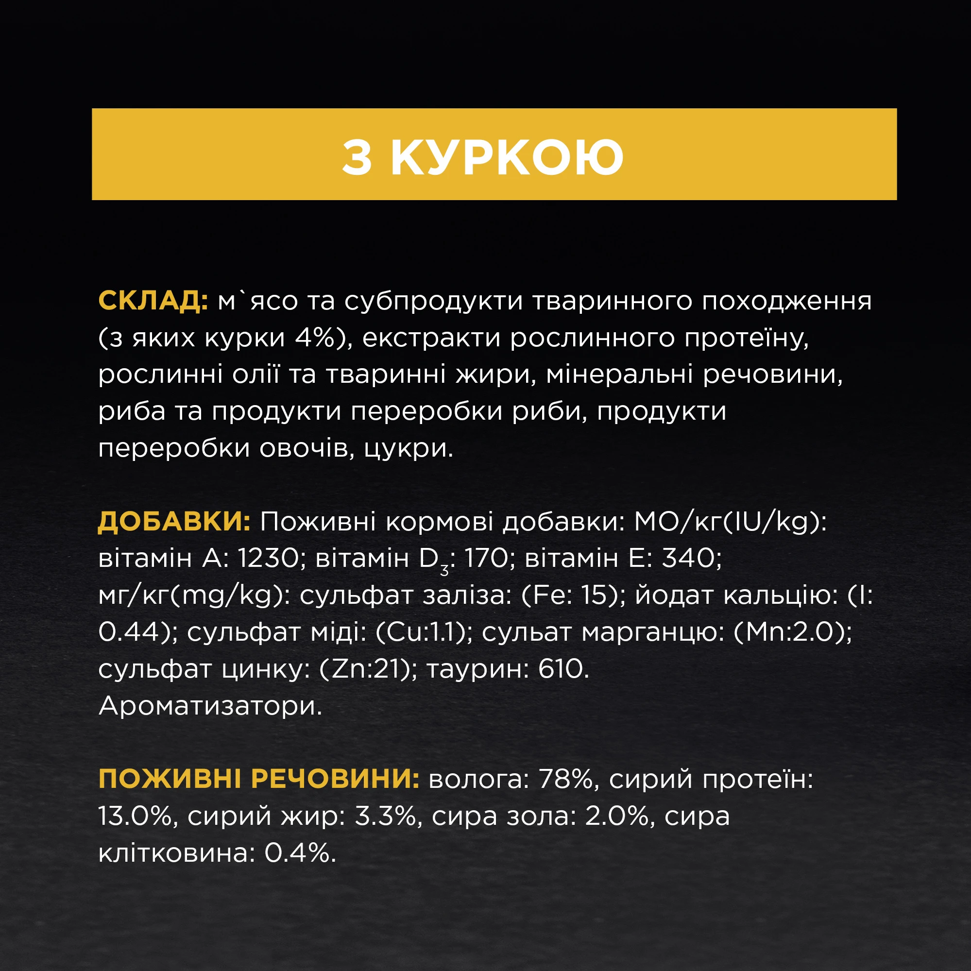 Влажный корм Pro Plan Sterilised Nutrisavour нежные кусочки с курицей в подливке — это высококачественный корм для стерилизованных кошек и кастрированных котов с высоким содержанием белка и низким содержанием жира, объединяющий все необходимые питательные вещества, включая витамины А, D и Е, и минеральные вещества. Специальная формула корма помогает поддерживать здоровье мочевыделительной системы за счет повышения потребления воды животными, способствует снижению минеральной насыщенности мочи.