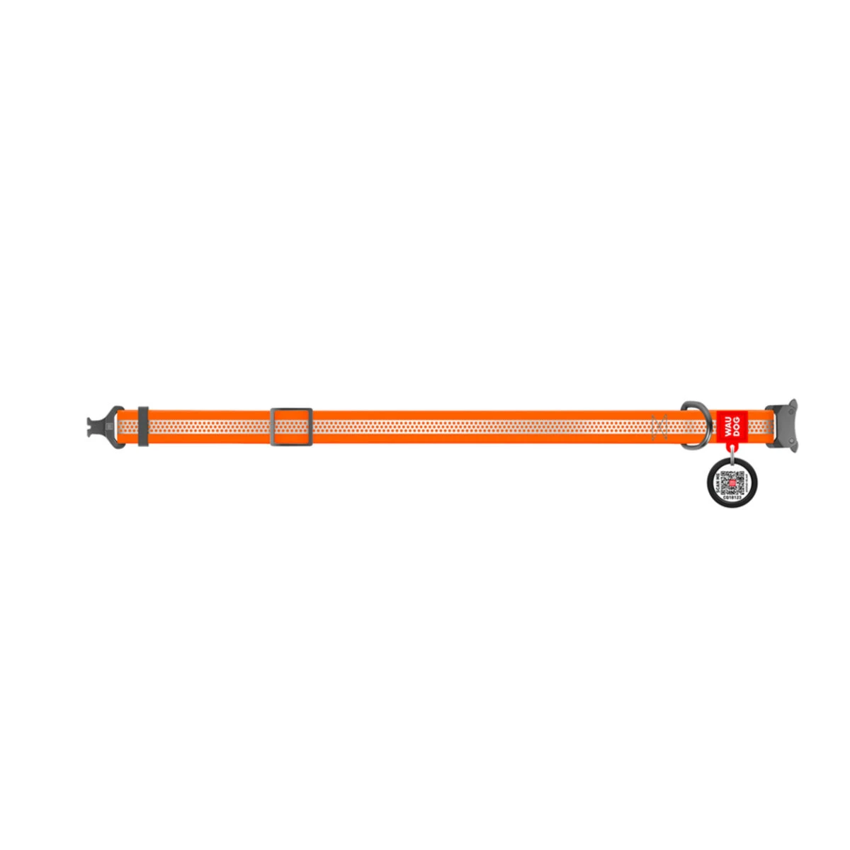 Водостійкий нашийник для собак WAUDOG Waterproof з QR-паспортом, світловідбиваючий, металевий фастекс, M, Ш 20 мм, Дл 24-40 см, оранжевий