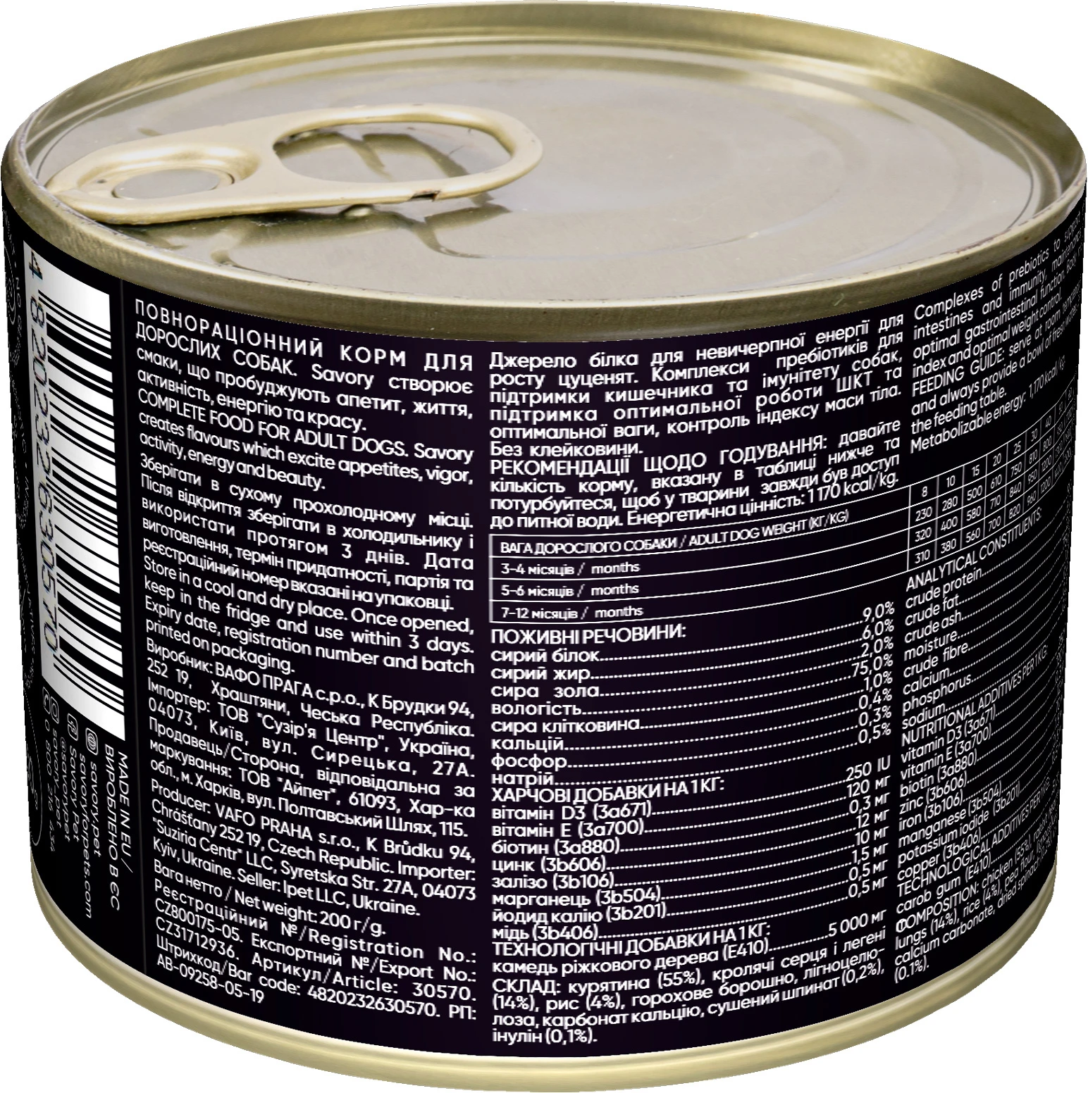 Ексклюзивна рецептура корму була розроблена досвідченими європейськими спеціалістами з харчування домашніх улюбленців. Використовуючи холістичний підхід, вдалося створити біологічно відповідний, здоровий раціон для собак, який є корисним і смачним настільки, що лапки оближеш. Сполучення відбірних натуральних інгредієнтів дає можливість піклуватися про здоров'я чотирилапого, а вишуканий смак — дарувати йому насолоду від щоденного споживання корму Savory.