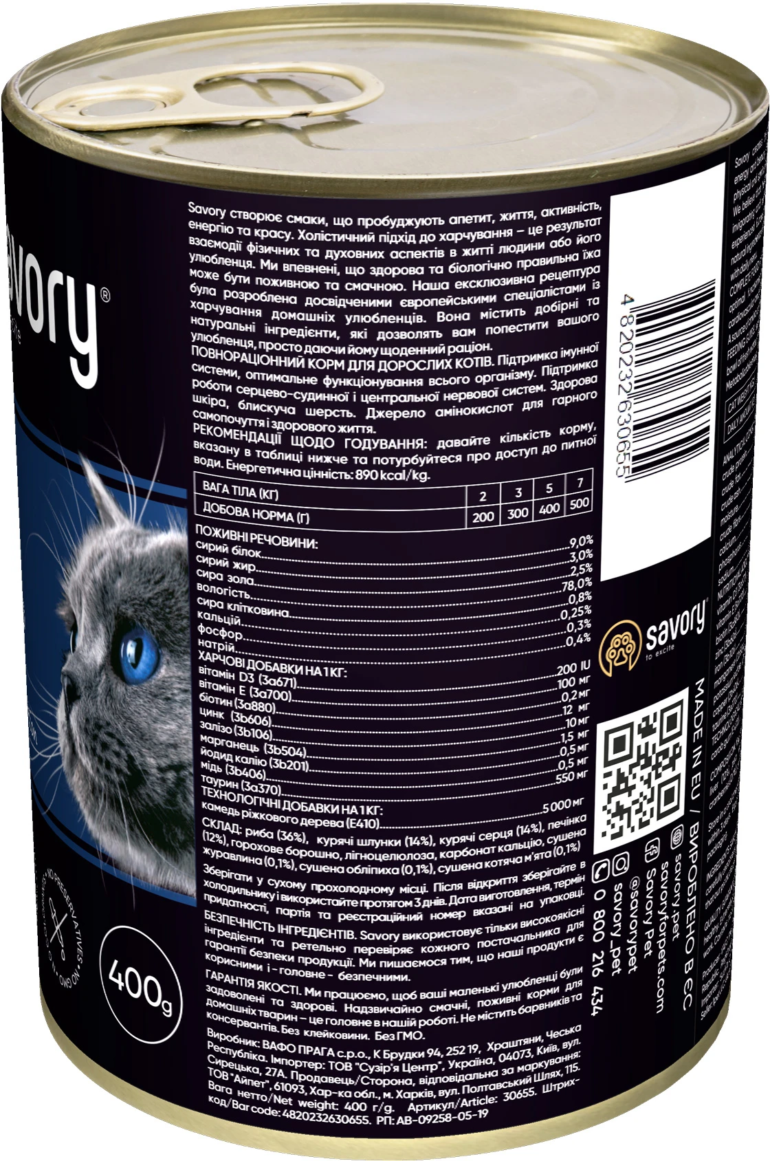 Вологий корм Savory з рибою для котів — це здорова шкіра, блискуча шерсть та оптимальне функціонування всього організму вашого улюбленця.