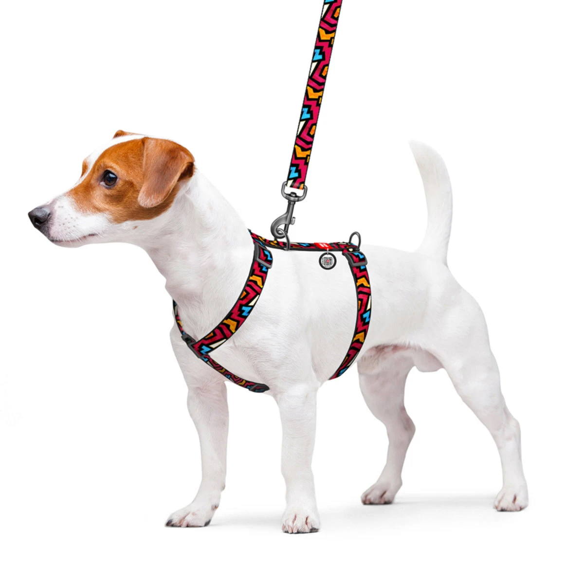 Анатомічна H-подібна шлея для собак WAUDOG Nylon з QR-паспортом, малюнок "Графіті", пластиковий фастекс, L, Ш 25 мм, А 50-90, В 60-100