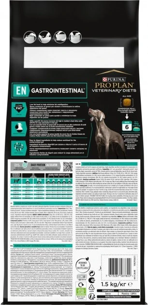 Сухий корм повнораціонний дієтичний для цуценят і дорослих собак при розладах травлення. Корм рекомендується для компенсації розладів травлення та порушення екзокринної функції підшлункової залози, з високою засвоюваністю інгредієнтів і низьким вмістом жиру. Підвищений рівень електролітів і висока засвоюваність дозволяють застосовувати цей раціон для зниження гострих порушень кишкового всмоктування.