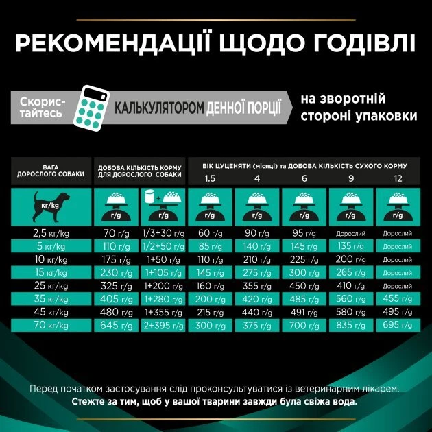 Рекомендований термін годування — від 3 до 12 тижнів для компенсації розладів травлення; протягом усього життя при хронічних порушеннях функції підшлункової залози та від 1 до 2 тижнів при гострих порушеннях кишкового всмоктування, а також під час і в період відновлення після гострих порушень кишкових захворювань (діарея). Перед використанням проконсультуйтеся з ветеринарним лікарем. Слідкуйте, щоб у собаки завжди була питна вода. Для собак вагою понад 70 кг: на кожні додаткові 5 кг ваги додавайте 35 г сухого корму.