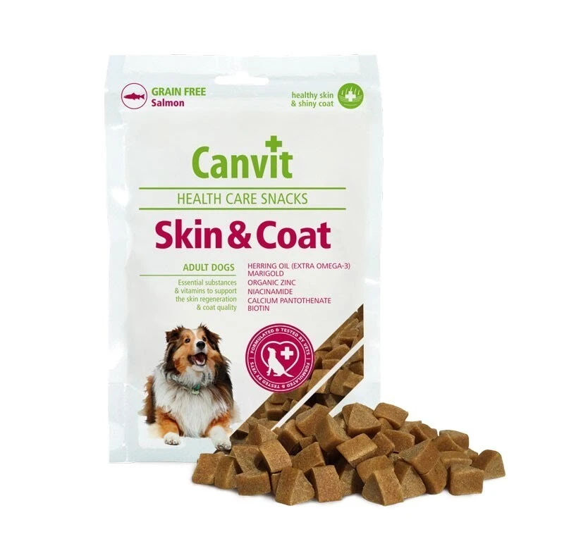 Смачні ласощі для здорової шкіри та густої блискучої шерсті. Шкіра та шерсть – це перша лінія захисту організму від впливу негативних факторів зовнішнього середовища. Для того, щоб шкіра повноцінно виконувала свою функцію, її метаболізму необхідні вітаміни, мікроелементи та амінокислоти, такі як вітаміни В2, В3, В5, цинк та метіонін, а також омега-3 ненасичені кислоти, що мають протизапальні властивості. ПОЛУВОЛОГІ ФУНКЦІОНАЛЬНІ ЛАСОЩІ З ЛОСОСЕМ ДЛЯ ДОРОСЛИХ СОБАК. З БІОТИНом, ЦИНКОМ, ОМЕГА-3 І КОЛАГЕНОМ ДЛЯ ЗДОРОВОЇ ШКІРИ, МІЦНИХ КЛІТКІВ І ГУСТОЇ БЛИСКУЧОЇ ШЕРСТІ. Показання: для краси, здоров'я та блиску шерсті, особливо для собак шоу класу. Ласощі забезпечують здоровий ріст шерсті в період линьки, сприяють формуванню здорового кератинового шару нігтів. Як допоміжна терапія: при лікуванні захворювань шкіри, шерсті та нігтів. Склад: картопля, лосось (15%), рідкий крохмаль, жир з оселедця (6%), гідролізована куряча печінка, колаген, висушена календула (5 г/кг). 10 шматочків для собаки вагою 10 кг містять: Вітаміни: біотин 14 мкг, вітамін B3 300 мкг, вітамін B5 50 мкг Мікроелементи: цинк 1100 мкг Омега-3 кислоти: (EPA, DHA) 250 мг Колаген 400 мг і календула 50 мг Харчові добавки (в 1 кг): цинк 110 мг, ніацинамід 30 мг, пантотенат кальцію 5 мг, біотин 1,4 мг. Гарантований аналіз: протеїн 16,0 %, жир 7,5 %, вологість 17,0 %, зола 5 %, клітковина 1,5 %. Інструкція по застосуванню: ласощі дають прямо з руки або додають у корм.