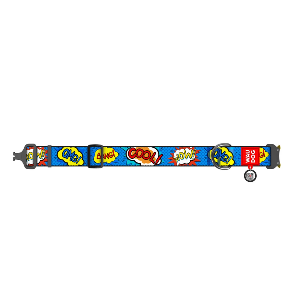 Нашийник для собак нейлоновий WAUDOG Nylon з QR паспортом, малюнок "ВАУ", металевий пряжка-фастекс, XXL, Ш 35 мм, Дл 43-70 см