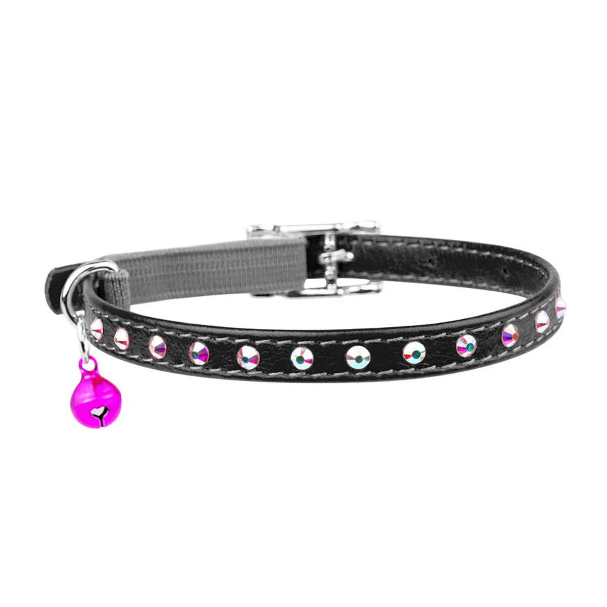 Нашийник "WAUDOG GLAMOUR" з резинкою, клейовими стразами для котів (ширина 9мм, довжина 22-30см), чорний