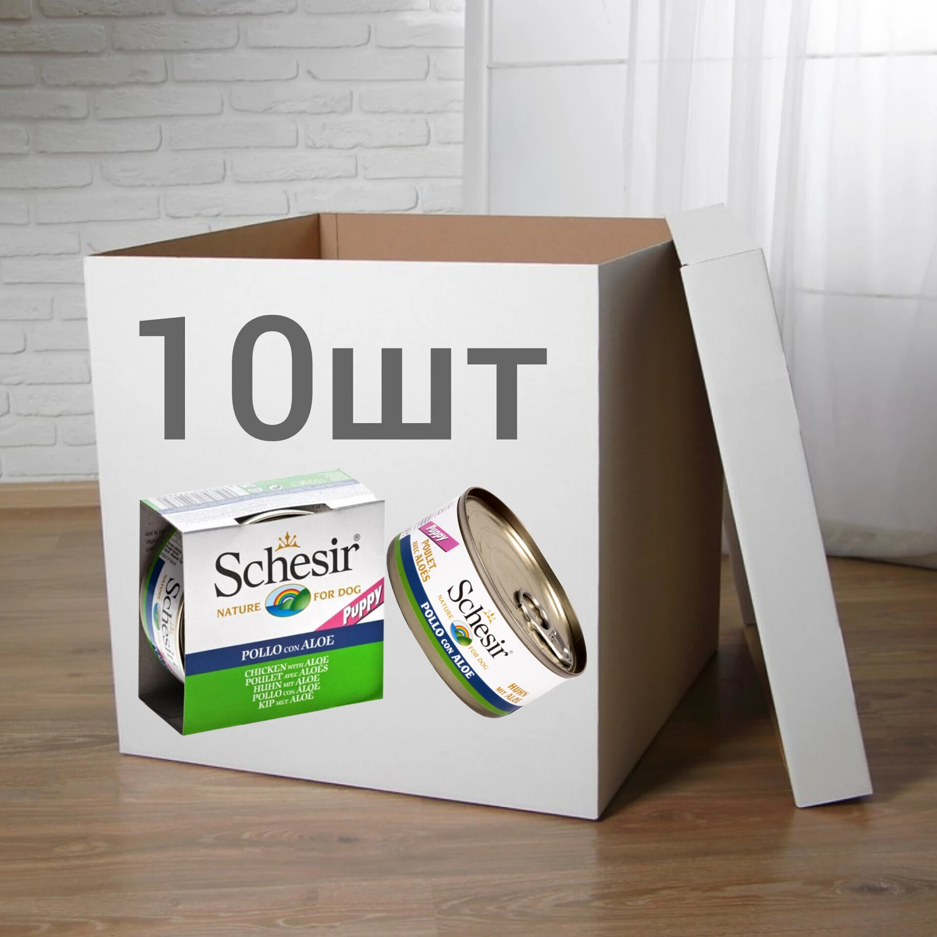 Schesir Chicken Aloe Puppy – Шезир курица с алоэ в желе. Влажный корм для щенков всех пород возрастом от 1 до 12 месяцев. В каждой банке – только лучшие кусочки филе курицы в нежнейшем прозрачном овощном желе, приготовленные на пару и обработанные вручную. Рецепт обогащен набором основных витаминов и минералов для здорового развития щенка.