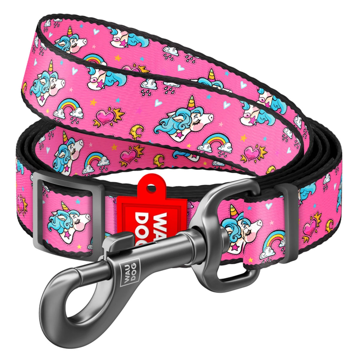 Поводок для собак нейлоновий WAUDOG Nylon, малюнок "Єдинороги", регульований, Ш 15 мм, Дл 152-183 см
