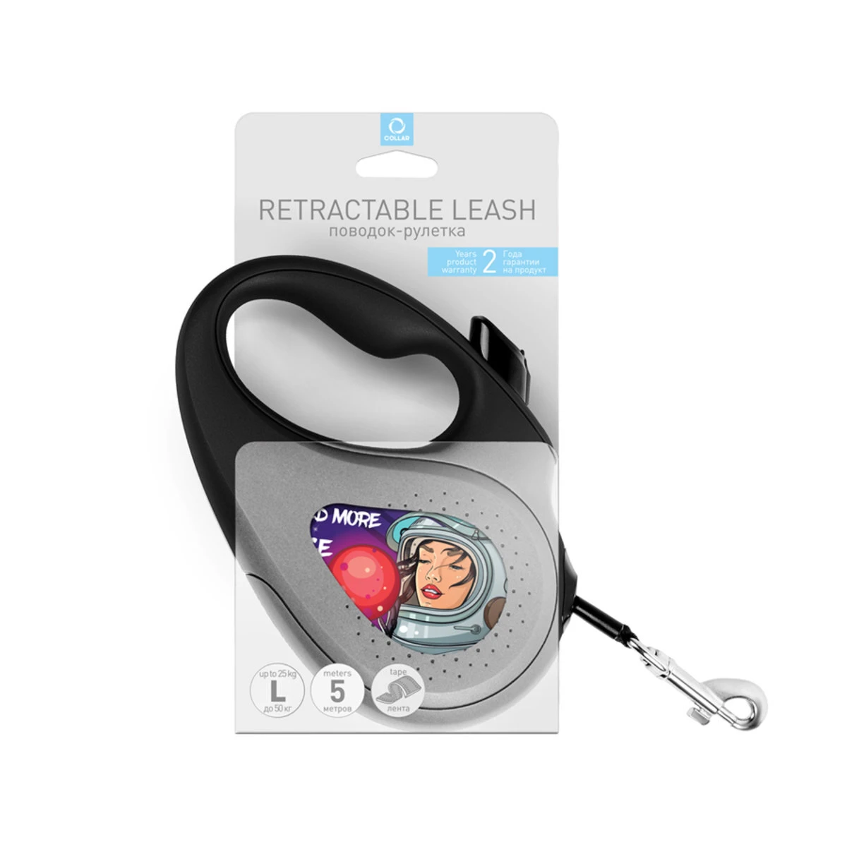 Поводок-рулетка для собак WAUDOG R-leash, малюнок "Більше космосу", світловідбиваюча стрічка, L, до 50 кг, 5 м, чорний