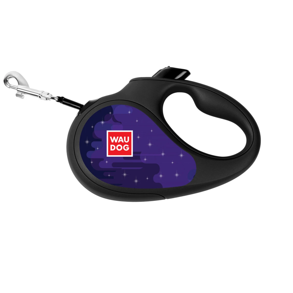 Поводок-рулетка для собак WAUDOG R-leash, малюнок "Більше космосу", світловідбиваюча стрічка, M, до 25 кг, 5 м, чорний