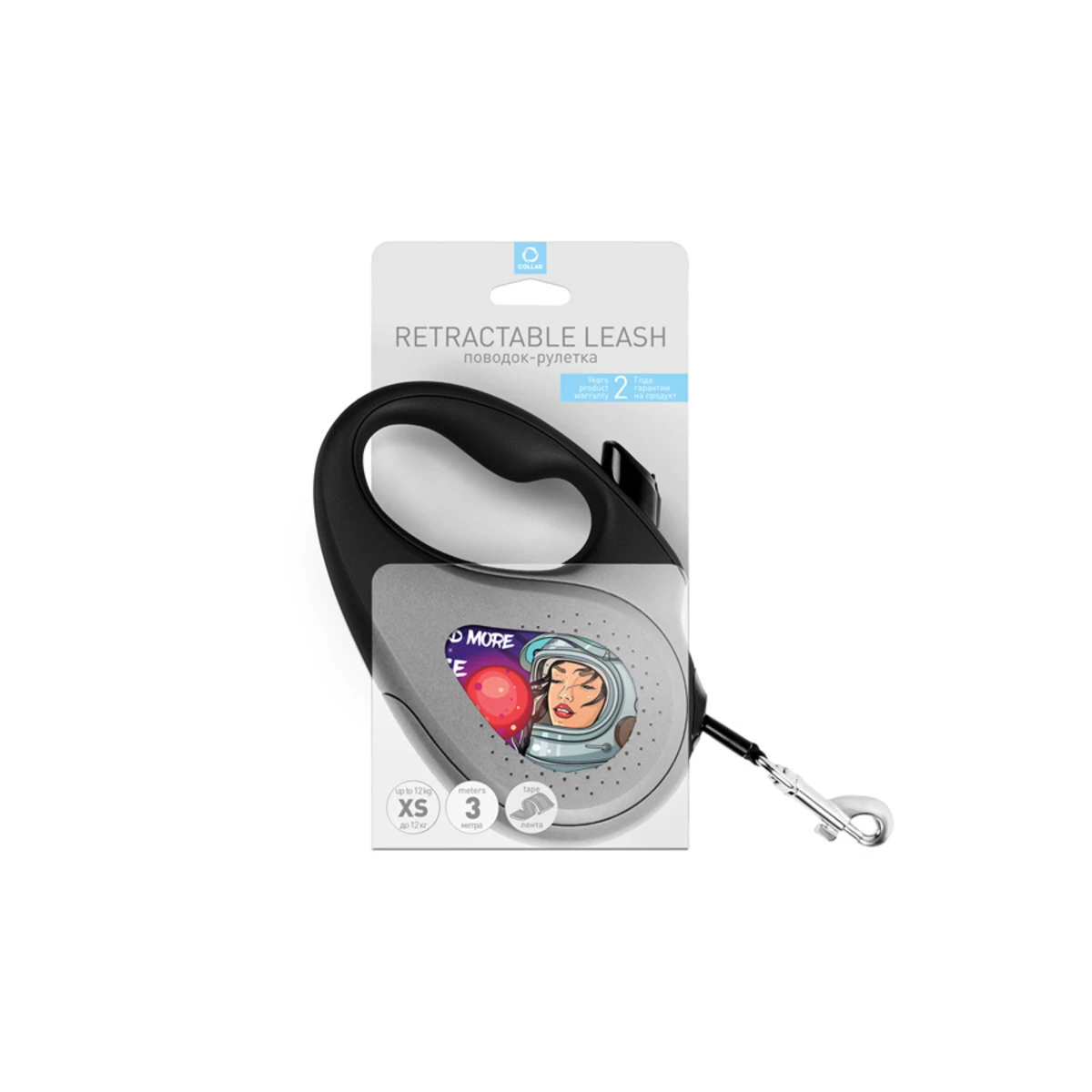 Поводок-рулетка для собак WAUDOG R-leash, малюнок "Більше космосу", світловідбиваюча стрічка, XS, до 12 кг, 3 м, чорний