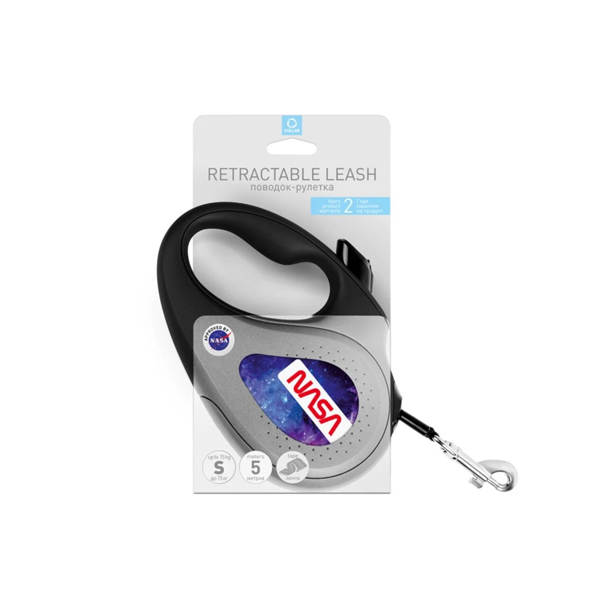 Поводок-рулетка для собак WAUDOG R-leash, малюнок "NASA21", S, до 15 кг, 5 м, світловідбиваюча стрічка, чорний