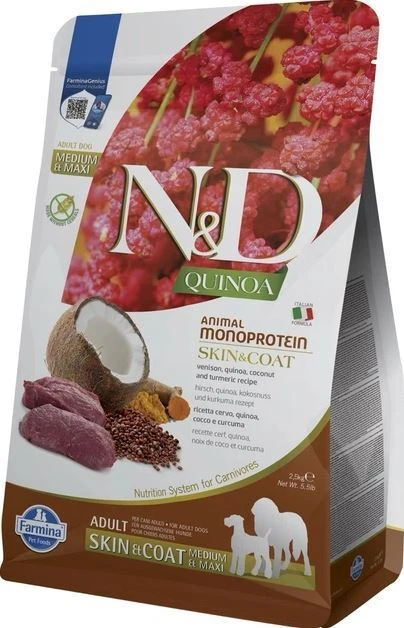 Полноценный диетический сухой корм с олениной, киноа, кокосом и куркумой для взрослых собак средних и крупных пород со склонностью к пищевой непереносимости и заболеваниям кожи и шерсти. Рацион помогает избежать нежелательных пищевых реакций у любимца и оказывает заботу о кожных покровах, улучшая состояние эпидермиса и поддерживая красивый внешний вид.