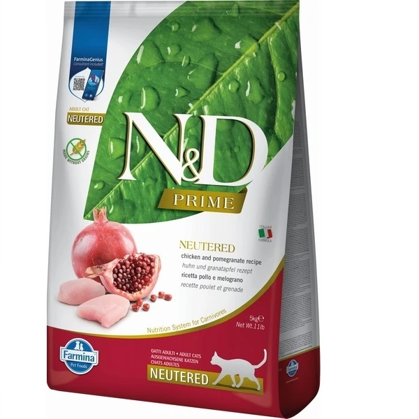 Farmina N&D Grain Free Adult Sterilized Chicken & Pomegranate — это премиальный рацион, созданный для здоровья и комфорта стерилизованных и кастрированных кошек.
