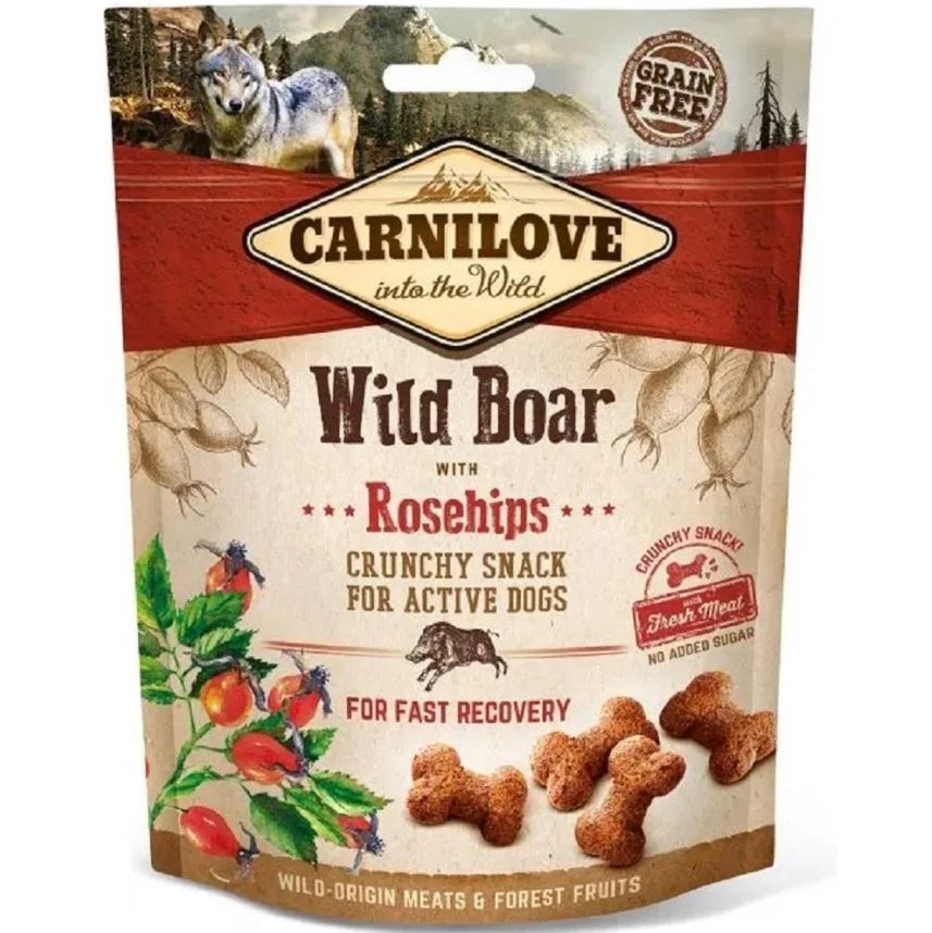 Carnilove Crunchy Wild Boar with Rosehips – изысканное лакомство со свежим мясом дикого кабана и шиповником для собак. Снеки имеют беззерновую рецептуру. Станут идеальным дополнением к рациону активных собак, ведь шиповник является источником витамина С, что способствует быстрому восстановлению.