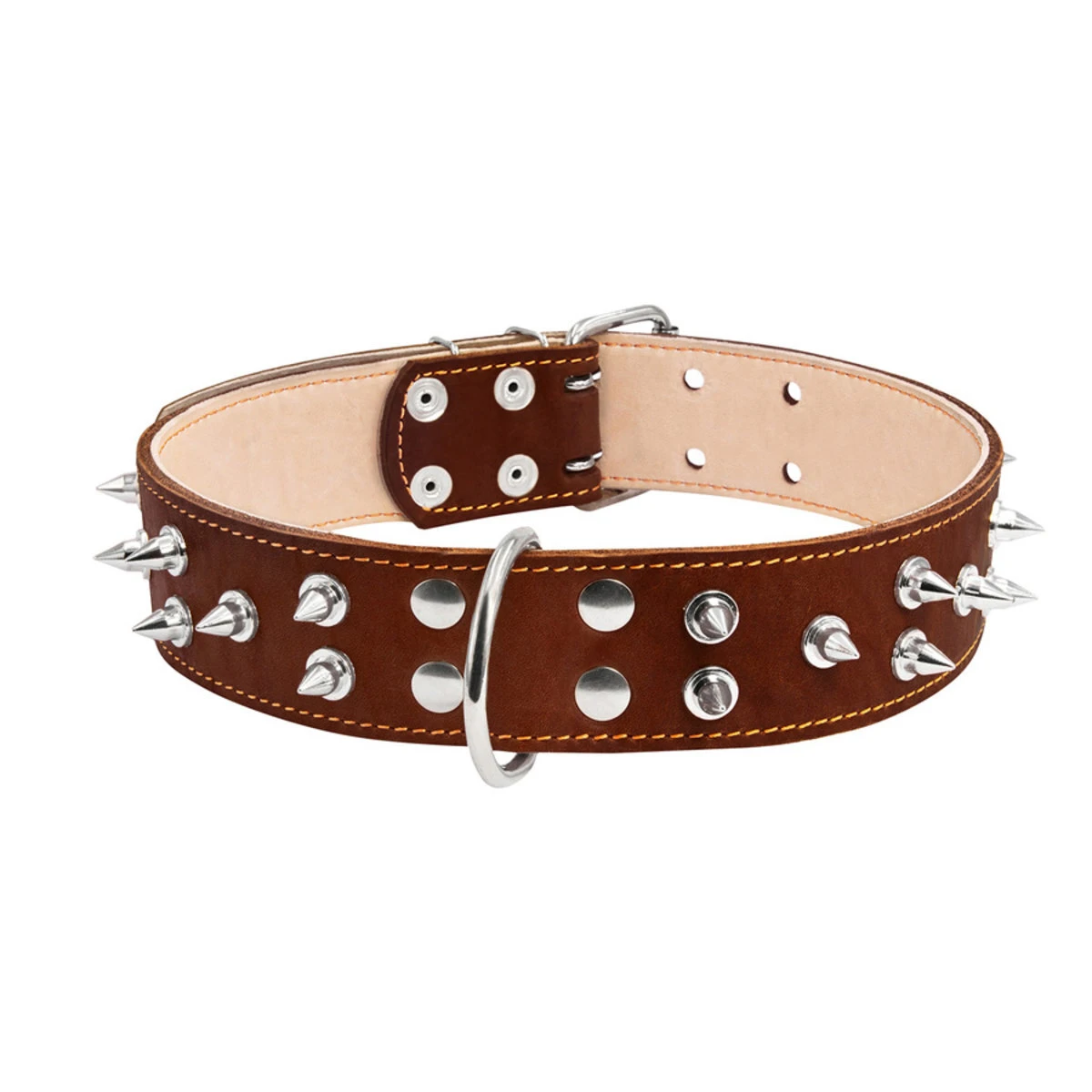 Ошейник "CoLLaR" двойной с шипами (ширина 45мм, длина 56-68см), коричневый