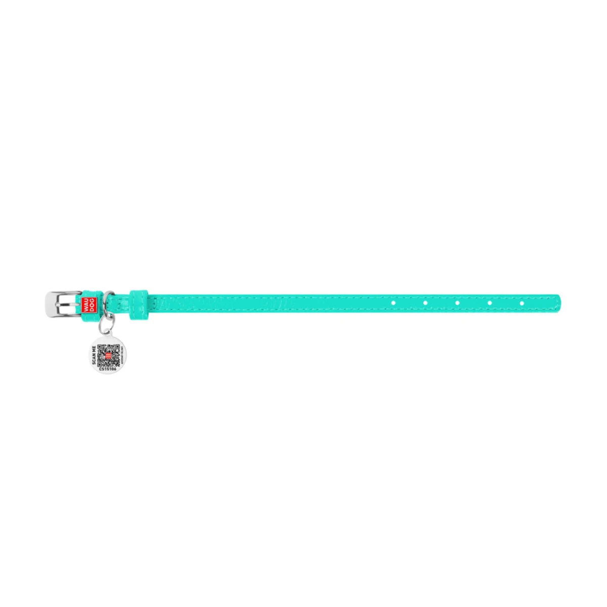 Ошейник для собак кожаный WAUDOG Glamour с QR паспортом, без украшений, Ш 12 мм, Дл 21-29 см, ментоловый