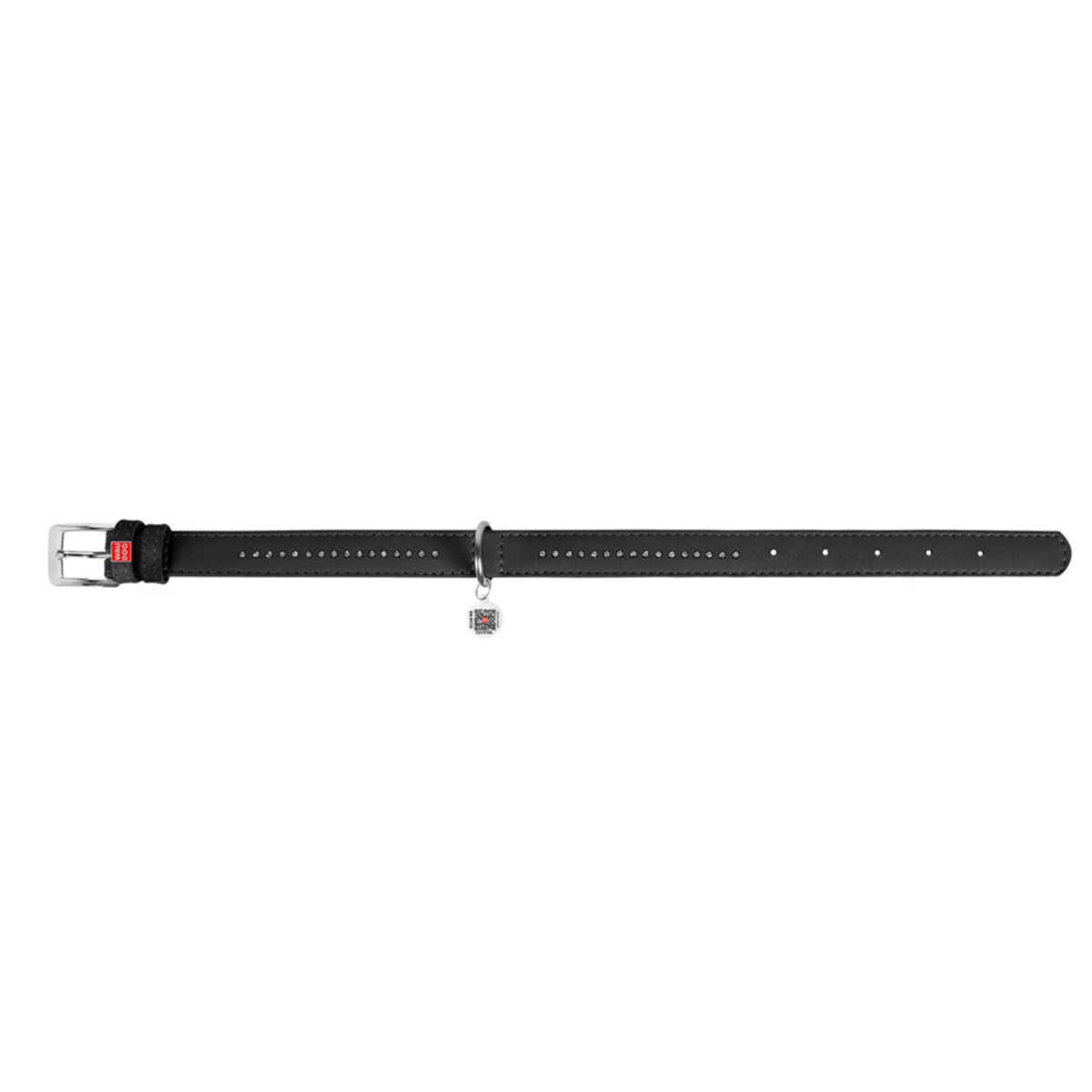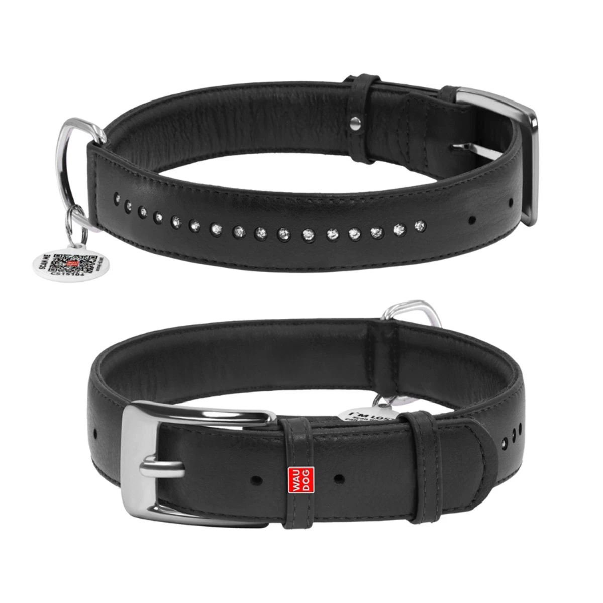 Ошейник для собак кожаный WAUDOG Glamour с QR паспортом, двойной со стразами, Ш 35 мм, Дл 46-60 см, черный