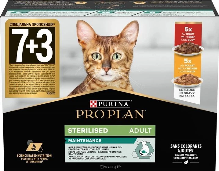 Влажный корм Purina Pro Plan Sterilised Adult Maintenance (Акционный набор 7+3)