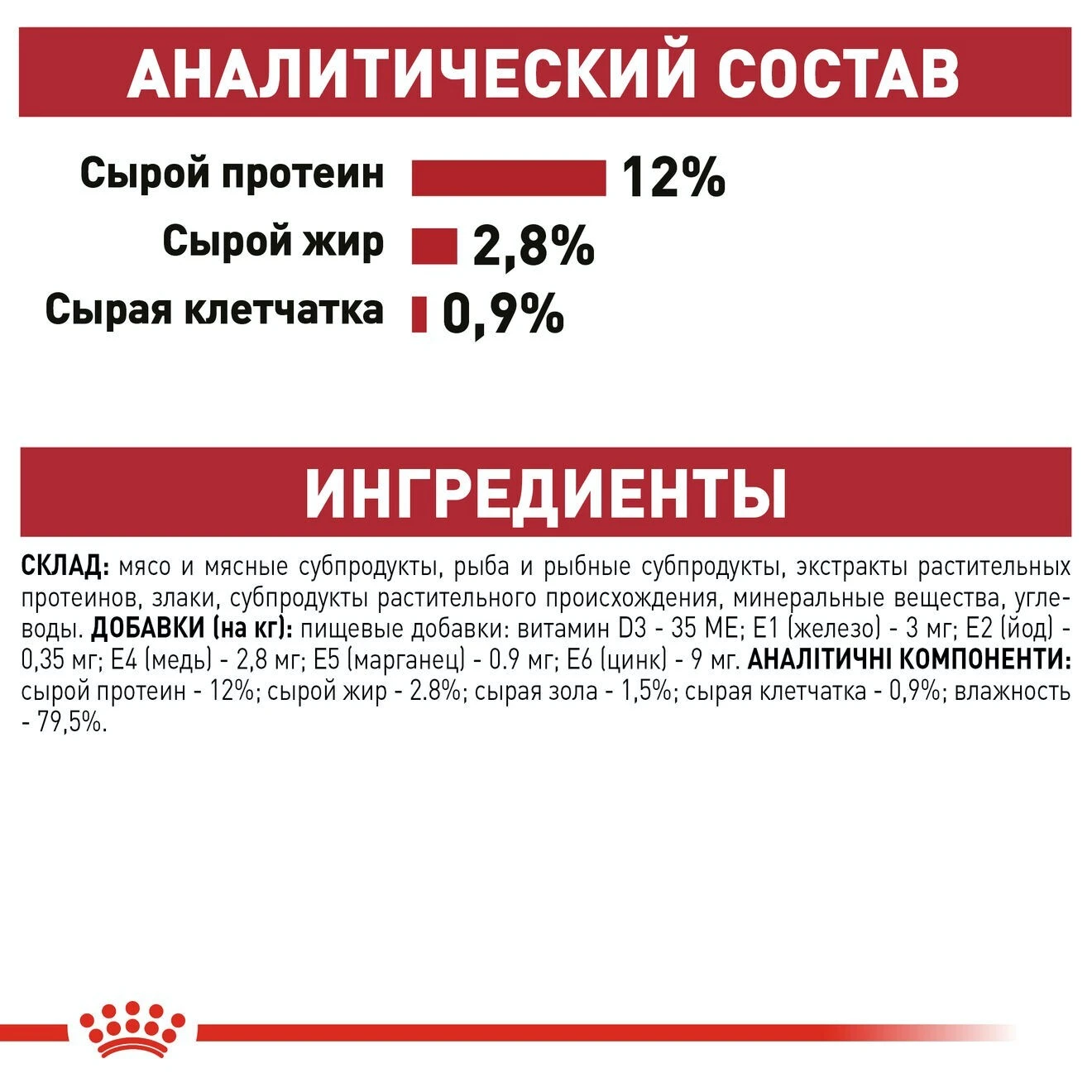 сырой протеин - 12%; сырой жир - 2,8%; сырая зола - 1,5%; сырая клетчатка - 0,9%; влажность - 79,5%.