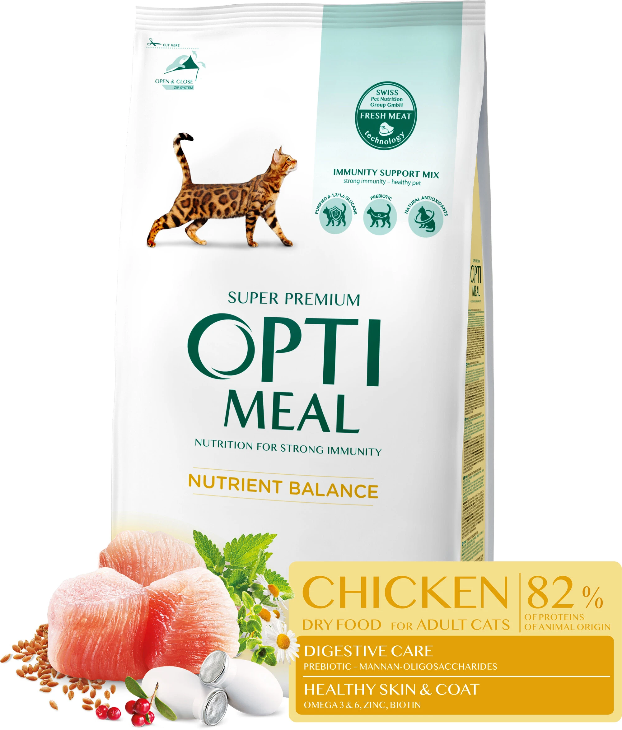 Полнорационный сухой корм для взрослых кошек Optimeal курица 1.5 кг. Обогащенный белками, минералами и витаминами для максимального удовлетворения потребностей кота. Укрепляет иммунитет. Очищает зубы.