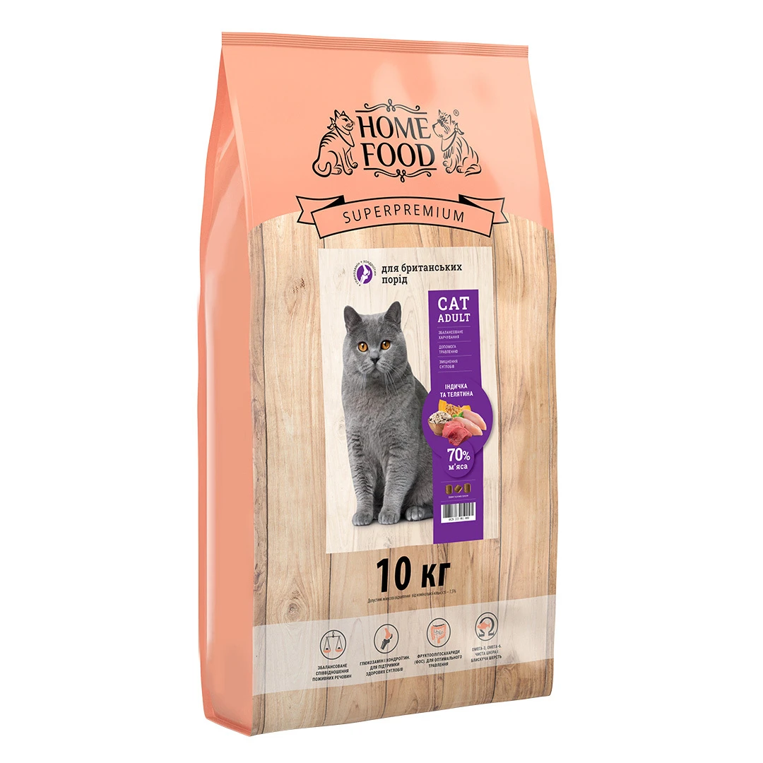 Полнорационный сухой корм для взрослых котов Британских пород Home Food с индейкой и телятиной 10 кг