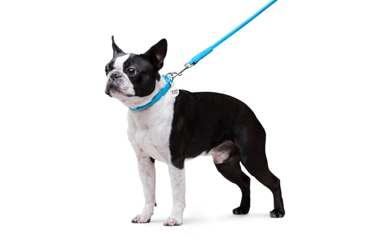 Поводок для собак кожаный WAUDOG Glamour, круглый, Д 8 мм, Дл 122 см, голубой