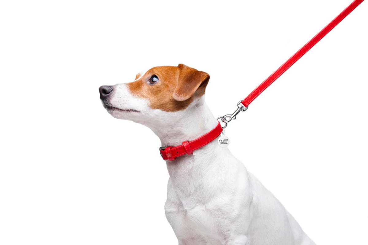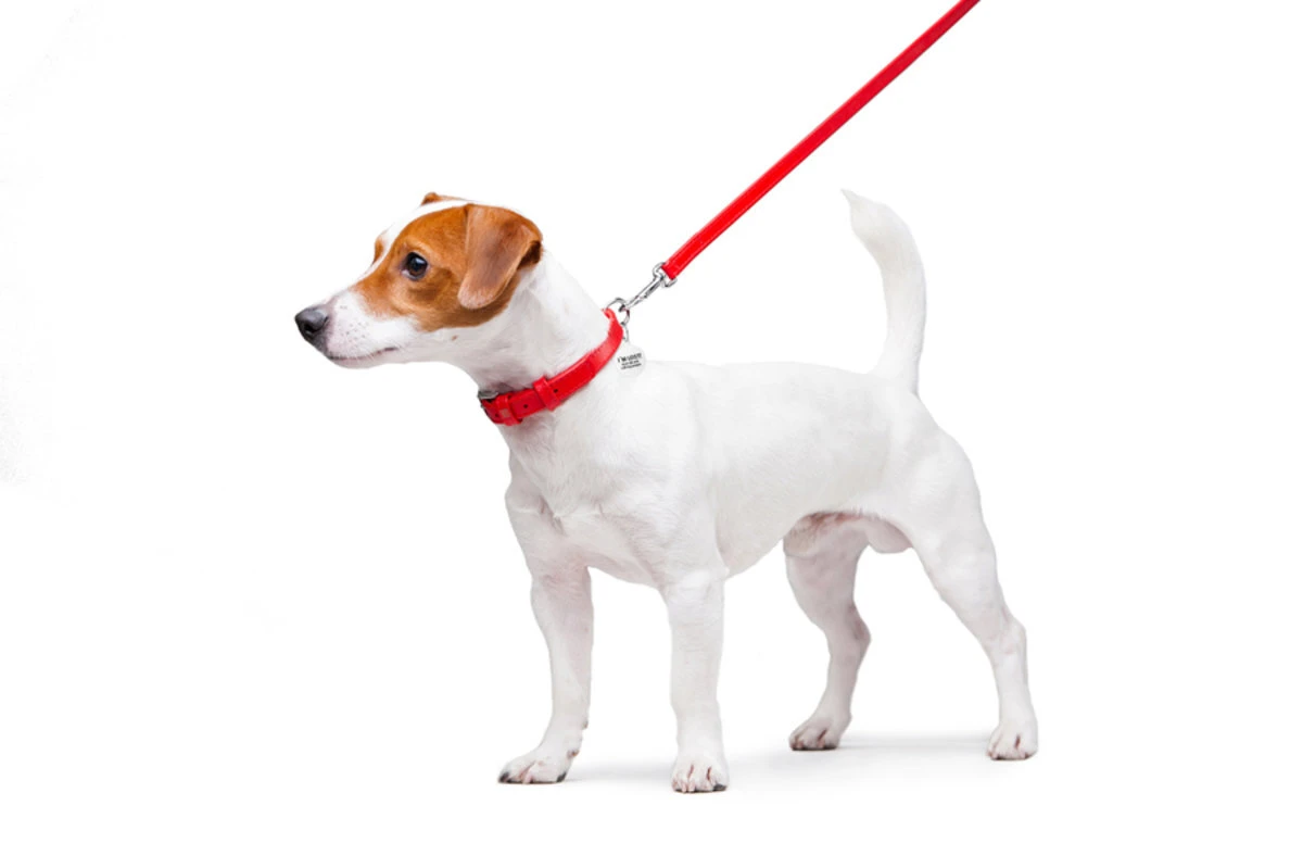 Поводок для собак кожаный WAUDOG Glamour, Ш 12 мм, Дл 122 см, красный