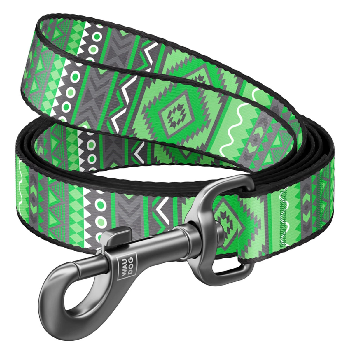 Поводок для собак нейлоновый WAUDOG Nylon, рисунок "Этно зеленый", Ш 25 мм, Дл 122 см