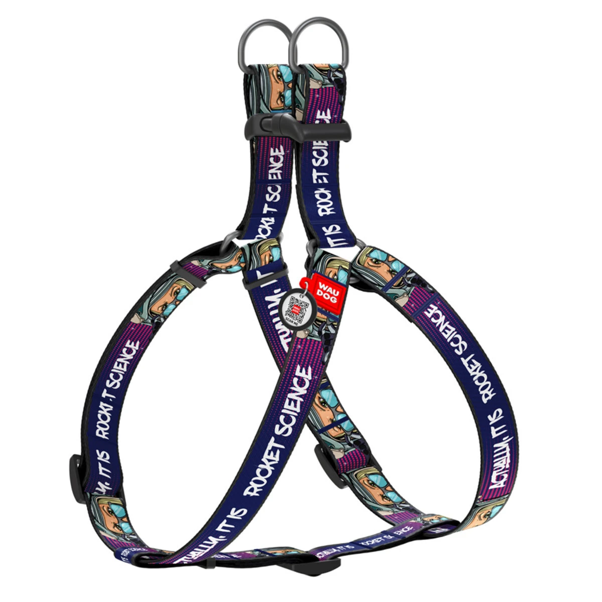 Шлея для собак анатомическая H-образная WAUDOG Nylon с QR-паспортом, рисунок "NASA", пластиковый фастекс, М, Ш 20 мм, А 40-70, В 50-80