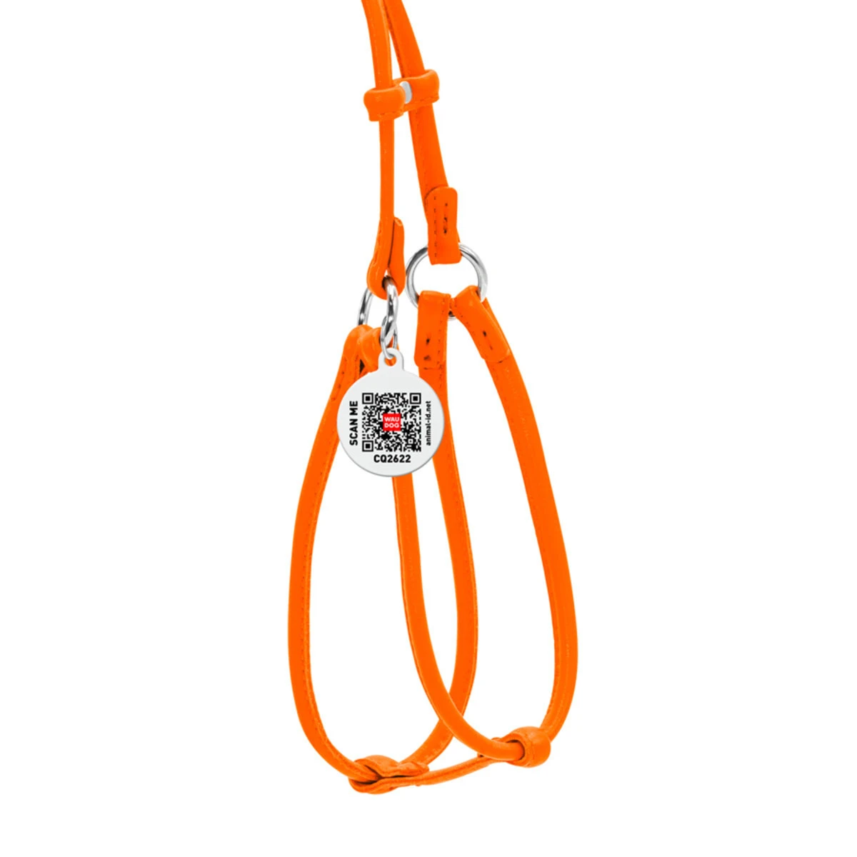 Шлея с поводком для собак кожаная WAUDOG Glamour c QR паспортом, круглая, Д 6 мм, А 26-46 см, В 30-50 см, оранжевый