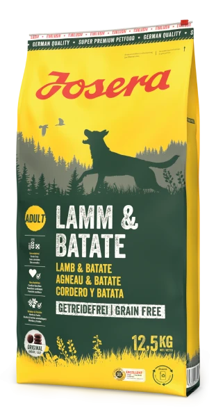 JOSERA Lamm & Batate Настоящее наслаждение ягнятиной для активных любителей природы: эта без зерновая рецептура со сладким картофелем, которая подходит также для чувствительных собак, обязательно понравится Вашему четырехлапому другу.