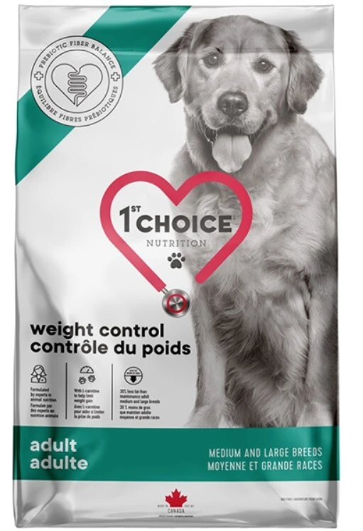 Формула суперпремиум корма 1st Choice Weight Control с низким содержанием жира разработана ветеринарами и экспертами в области питания специально для диетического рациона собак средних и крупных пород с избыточным весом и проблемой ожирения.