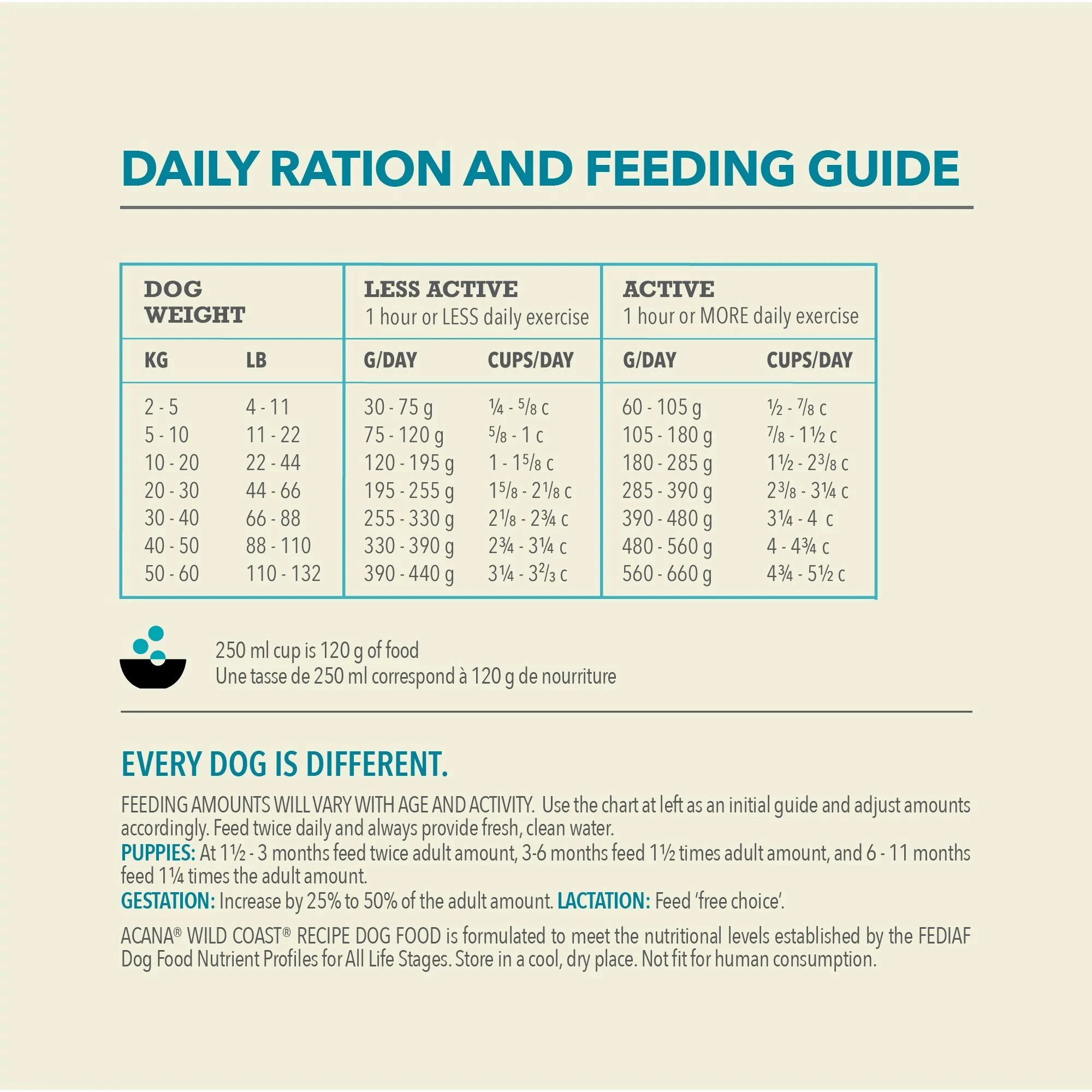 Сухой корм Акана Вайлд Коуст для собак содержит мясо лосося, окуня и камбалу, которые входят в число главных ингредиентов. Эти продукты содержат множество полезных веществ, таких как белок, жирные кислоты Омега-3 и Омега-6, витамины группы В, витамин D и минералы.