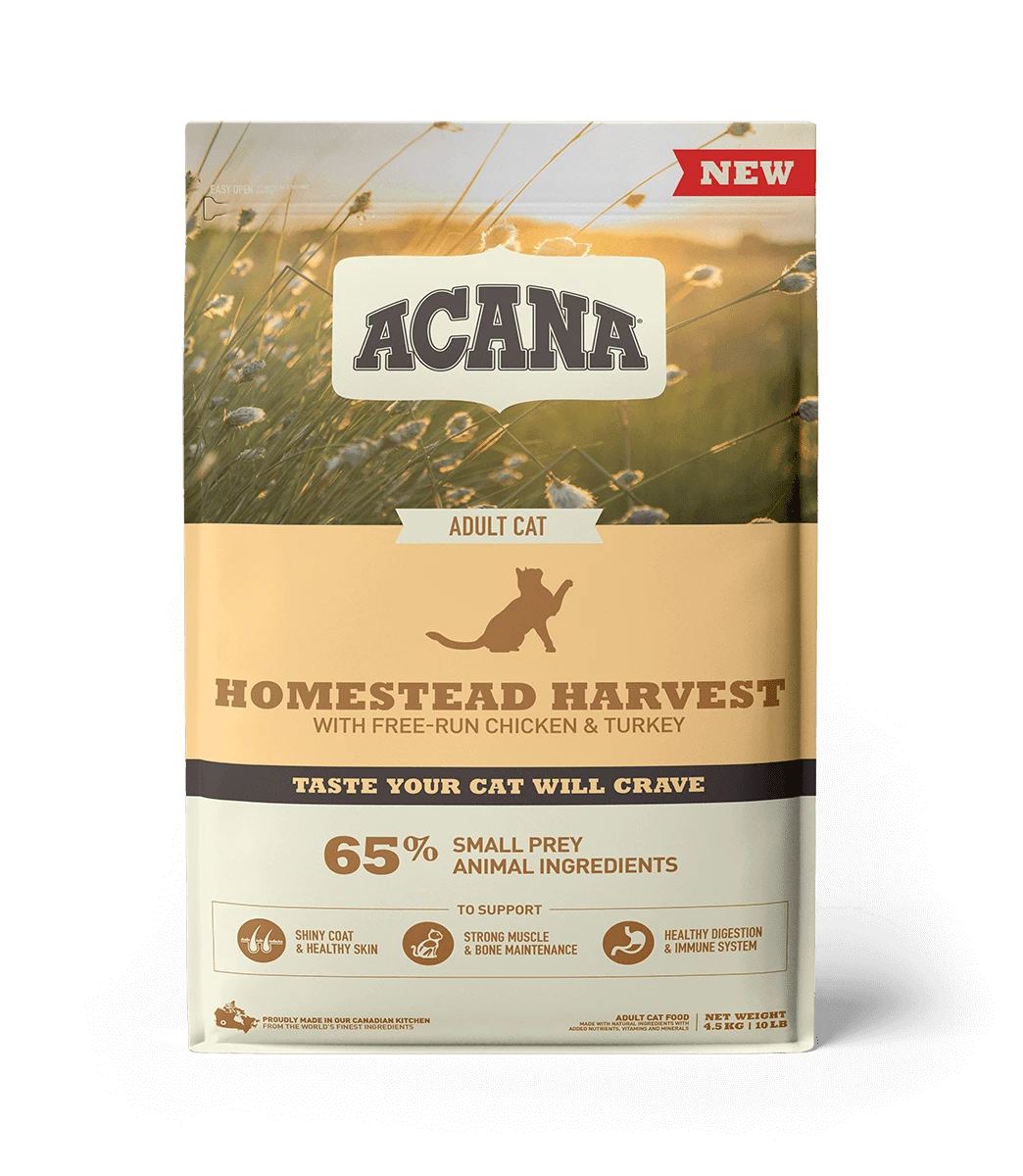 Кормите вашего миниатюрного дикого кота рационом, переполненным качественными мясными ингредиентами. Новый рацион ACANA Homestead Harvest переполнен мясом цыплят, индейки и утки, выращенных на свободном выгуле. Все мясные ингредиенты представлены в соотношении WholePrey, включая мясо птицы, органы и хрящи обеспечивая природное питание вашего кота и вкус перед которым он не сможет устоять, чтобы ваш питомец всегда оставался здоровым счастливым и сильным