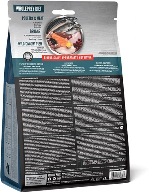 Высокопитательное соотношение ингредиентов WholePrey, включая мясо, органы и хрящи в сочетании с цельной рыбой и цельными гнездовыми яйцами, является естественным источником практически всех питательных компонентов, необходимых котам. С гордостью приготовлен в Канаде из лучших мировых ингредиентов!