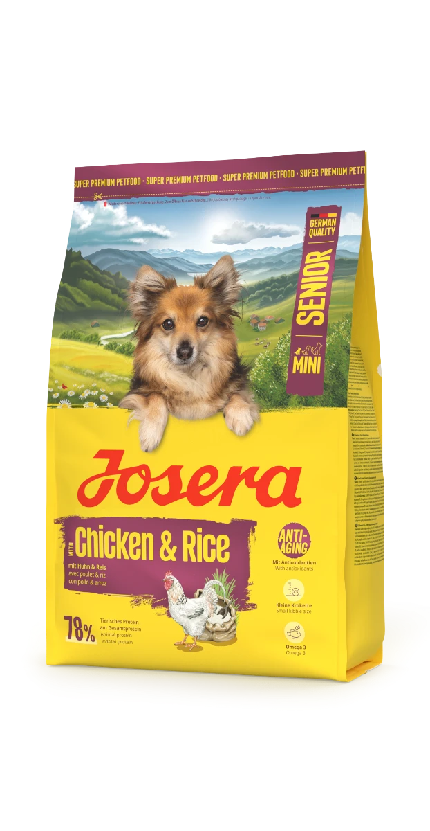 Антивозрастной эффект в миске? С нашим кормом Josera Mini Senior Chicken & Rice вы получите именно это: этот корм для пожилых собак изготовлен по безглютеновой рецептуре, идеально подходящей для их потребностей. Ценные антиоксиданты, такие как витамин Е, витамин С и таурин, помогают бороться со старением клеток, а L-карнитин предотвращает возрастную потерю мышечной массы. Пониженное содержание фосфора также помогает снизить нагрузку на почки.