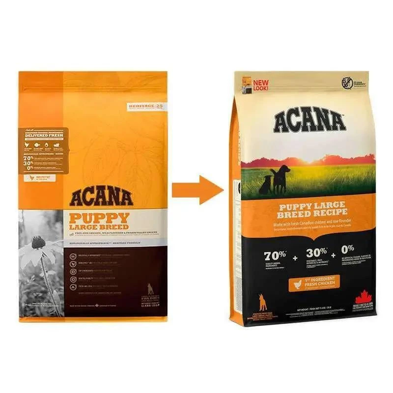 Когда это касается корма ACANA, каждый ингредиент имеет значение. Именно поэтому рецептура Puppy Large Breed Recipe создается с заботой и мыслью о растущих щенках крупных пород. Рецептура АКАНА ПАППИ Лардж Брид Ресипе на 70% переполнена качественными мясными ингредиентами, такими как мясо канадских цыплят и сырой камбалы и на 30% сбалансирована фруктами, овощами и травами.