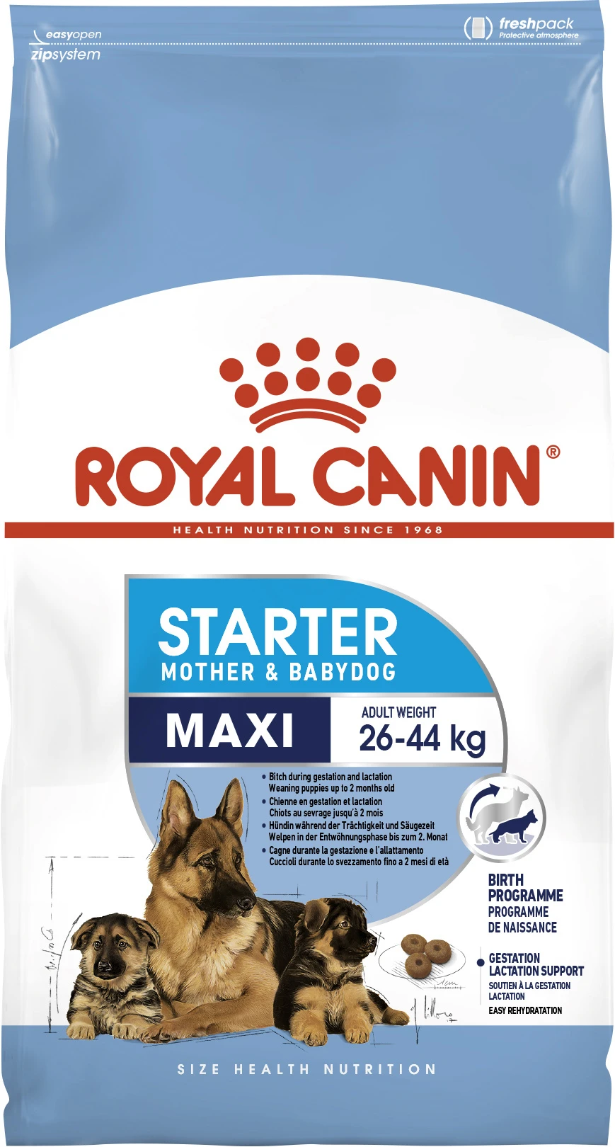 Рацион Royal Canin Starter Mother & Babydog Maxi разработан для щенков собак крупных размеров, вес которых во взрослом возрасте от 26 до 44 кг. Собака в период беременности и лактации, щенки от отлучения до 2 месяцев.