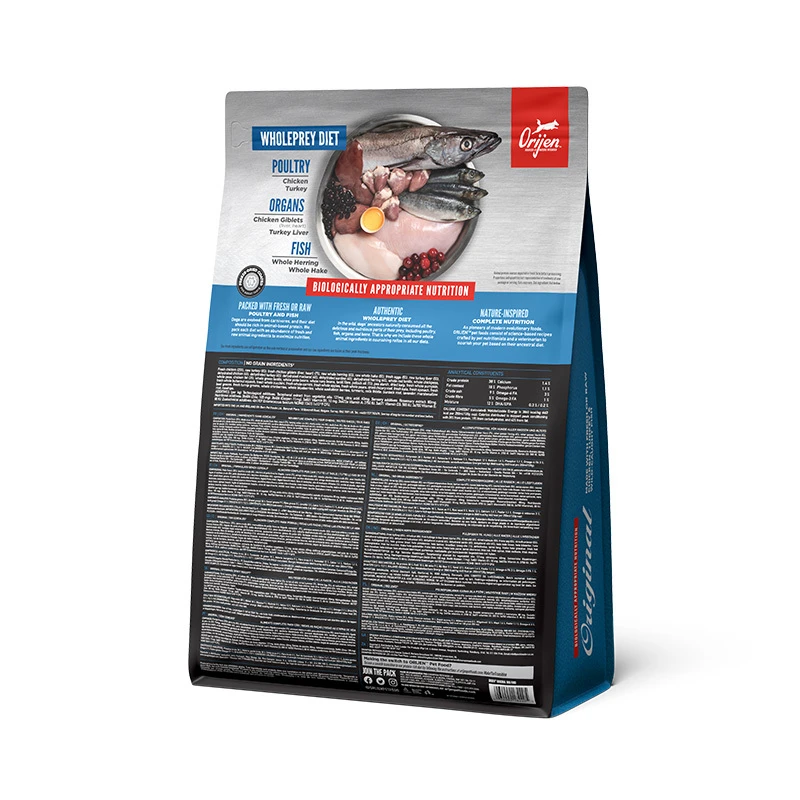 Помогите вашей собаке процветать с помощью силы высокопротеиновой рецептуры, что обеспечивает питание высочайшего уровня. Собаки – от природы мясоядные, поэтому они нуждаются в биологически подходящих рационах, богатых разнообразными видами цельных мясных ингредиентов. Рацион ОРИДЖЕН Ориджинал на 85% полон качественных мясных ингредиентов, таких как цыплята и индейка, выращенные на свободном выгуле и рыбы выловленной в дикой природе или экологически выращенной на фермах. Рацион, наполненный мясными ингредиентами в соотношении WholePrey, такими как высокопитательные органы и съедобные кости, рацион ОРИДЖЕН изготовлен из наиболее питательных и сочных частей добычи, чтобы обеспечить собак питанием, в котором они нуждаются. Как результат рацион для вашего любимца вне любых сравнений.