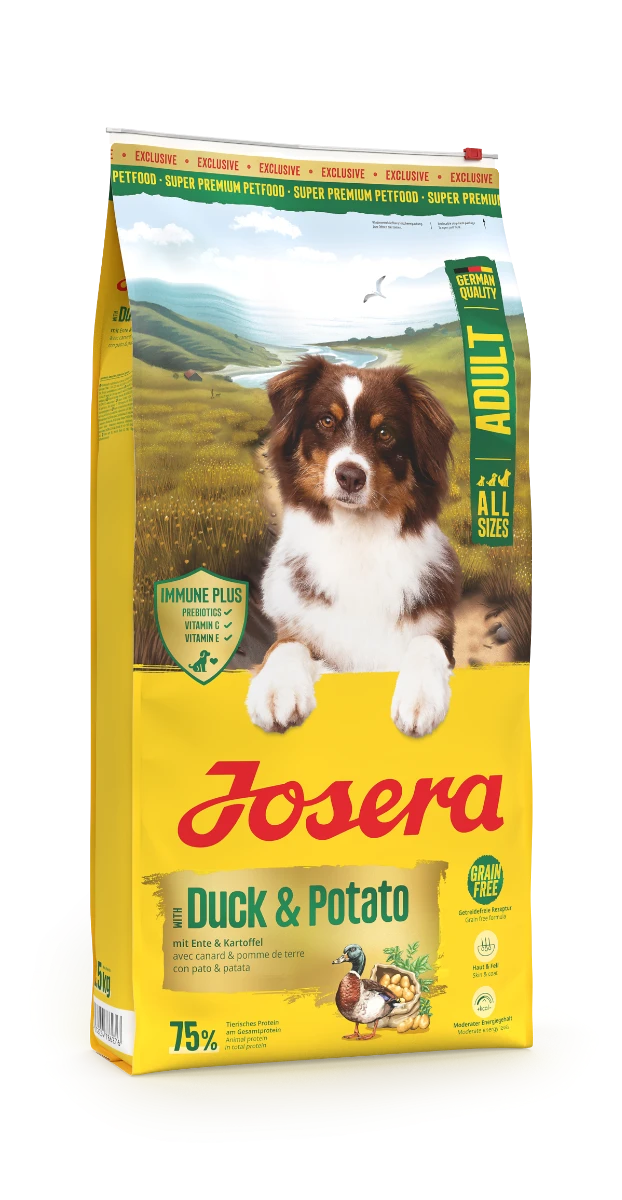 JOSERA Ente & Kartoffel для наших гурманов: натуральное наслаждение обеспечивается утиным мясом, единственным источником животного белка, и рецептурой без зерновых. Ценные жирные кислоты и биотин дополнительно поддерживают здоровье кожи и блеск меха.