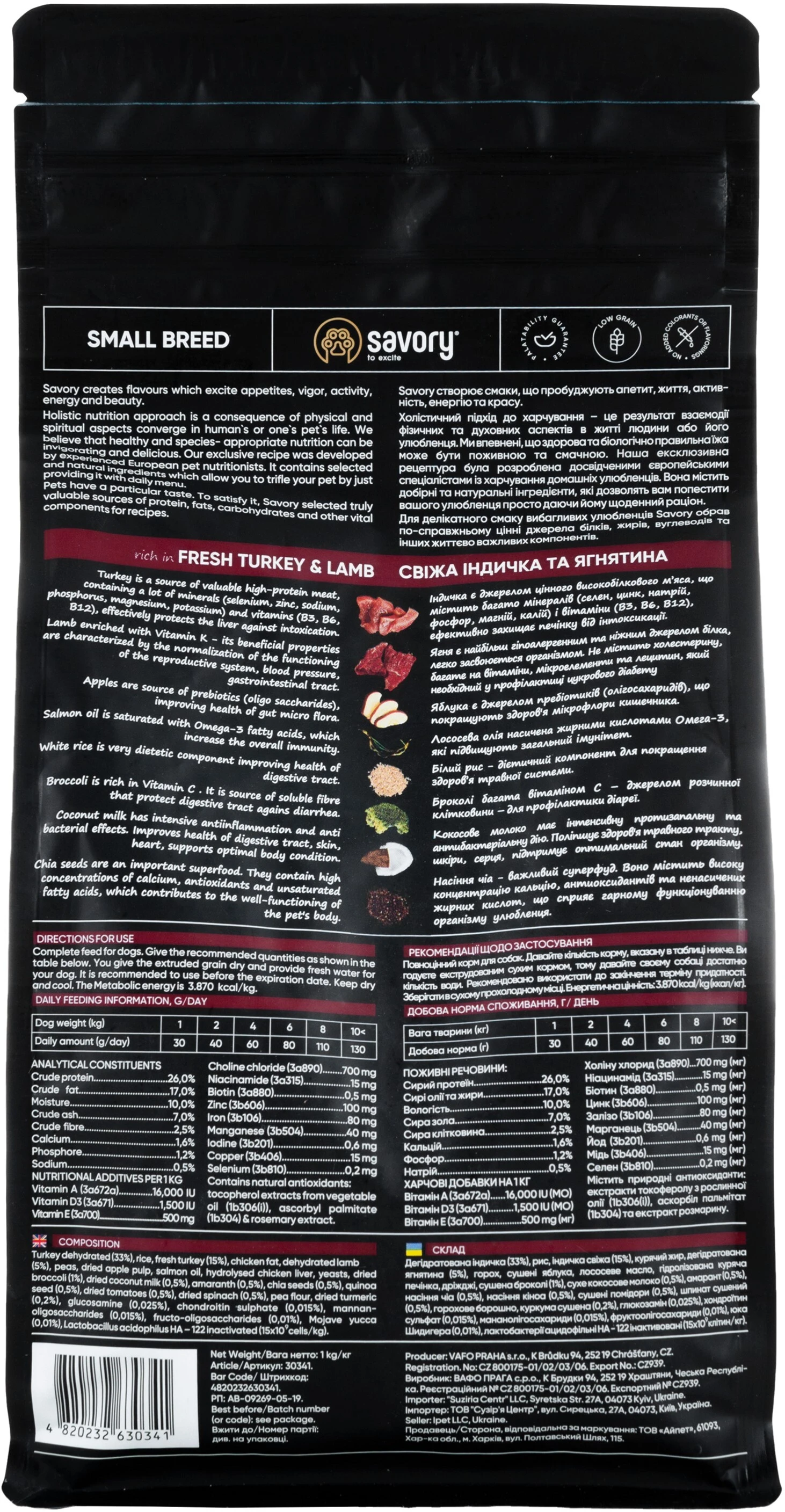 Сухой корм для собак малых пород Savory со свежим мясом индейки и ягнятиной 1 кг