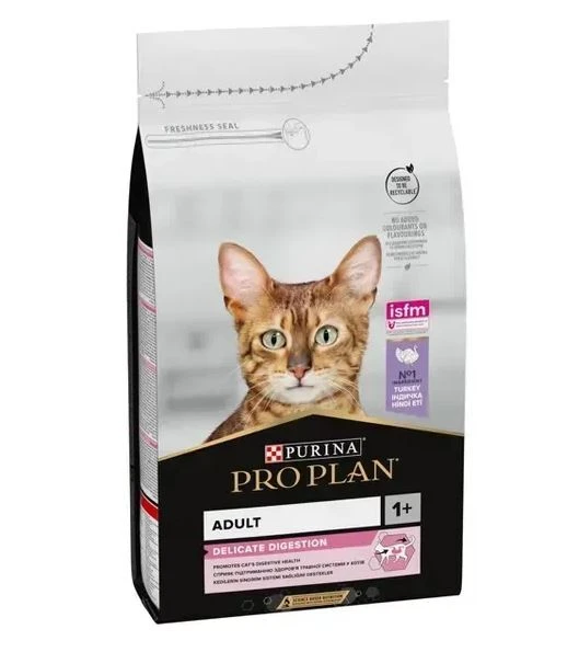 Purina Pro Plan Adult 1+ Delicate Digestion для взрослых кошек с чувствительной пищеварительной системой или требовательных к пище — высококачественный корм, содержащий все необходимые питательные вещества, включая витамины и минеральные вещества.