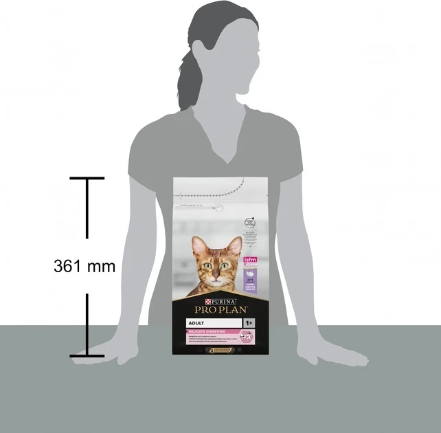 Purina Pro Plan Adult 1+ Delicate Digestion для взрослых кошек с чувствительной пищеварительной системой или требовательных к пище — высококачественный корм, содержащий все необходимые питательные вещества, включая витамины и минеральные вещества.