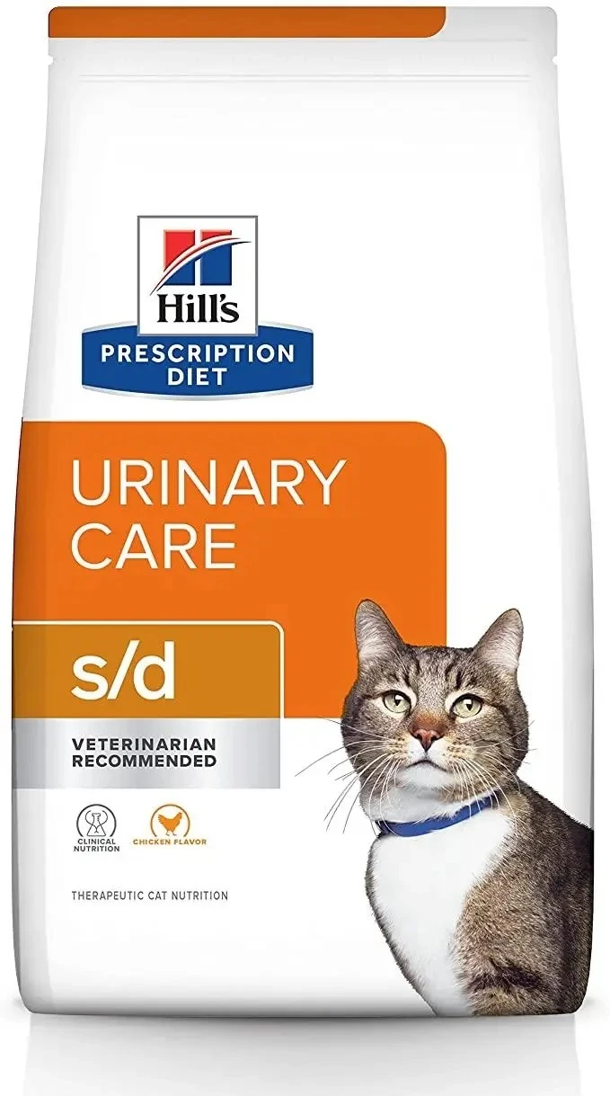 Hill`s Prescription Diet s/d корм для кошек – был специально разработан ветеринарными врачами для быстрого расстворения струвитных камней у вашей кошки. Рацион содержит пониженный уровень магния и способствует закислению мочи.