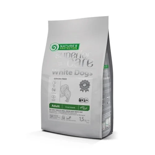 Nature's Protection White Dog Grain Free with Insect Adult Small Breed – корм cупер-премиум класса с протеинами насекомых, разработанный специально для взрослых собак малых и декоративных пород с белым окрасом шерсти.